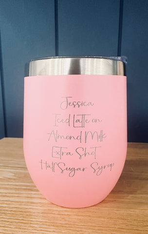 Enjoy your favorite coffee orders on the go with the unique Coffee Order Keep Cup! Perfectly engraved with your order, this reusable cup is the ideal companion for your daily coffee runs. Enjoy the convenience of having your order ready to go while helping protect the environment with this eco-friendly cup!