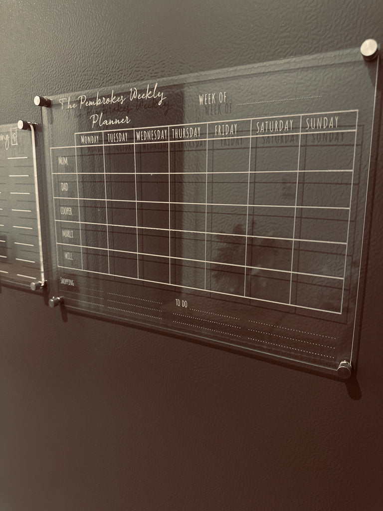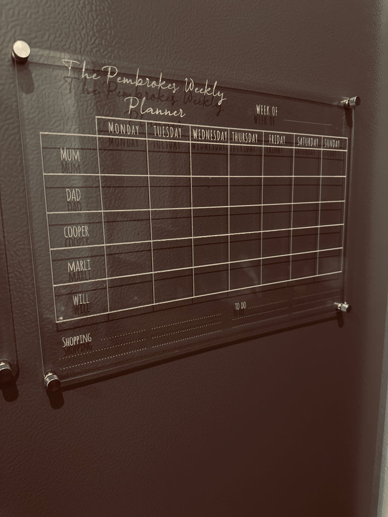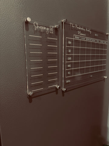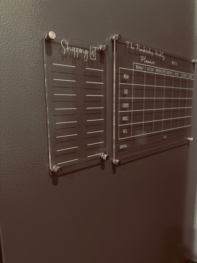 Stay organized and on top of your family's schedule with our Weekly Planner + Shopping List! Made of durable acrylic with magnetic backing, this planner conveniently sticks to your fridge. Easily plan out your week and make your shopping list all in one place. Say goodbye to forgotten appointments and last-minute trips to the store!